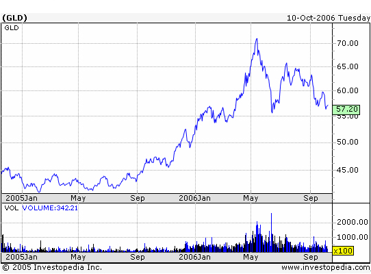 (3)投資需求:A.投資需求分為零售投資和EFTs(黃金交易基金) B.EFTs為近年投資黃金之最新途徑,05年以噸數計增長53% C.亞洲和中東地區國家有投資黃金的傳統 對價格的影響:投資需求的價格彈性較其他需求因素最大,對價格影響也最大. 例子: EFTs自2003年面市以來,已吸引上千億的資金流入黃金市場.成為近幾年金價大幅上漲最直接的動力. 簡析: ETF是Exchange Traded Funds的英文縮寫,它是一種交易型開放式指數基金,是跟蹤“標的指數”變化,既可以在交易所上市交易又可以通過一級市場用一籃子證券進行創設和置換的基金品種。美國證券交易委員對ETF的定義是“投資目標是獲得與標的指數回報率類同的一類投資公司”。為滿足這樣的投資要求,ETF選擇投資某一指數中的所有證券,或者選擇某一具有代表性的樣本組合。ETF基金份額可以像封閉式基金一樣在交易所二級市場方便地進行交易。 2004年11月,道富環球投資推出了第一支以實體黃金為投資對象的ETF--streetTRACKS Gold Shares(GLD)。由于其允許投資者持有金條卻無須承擔儲存成本,投資者通過股票賬戶就可以直接買賣黃金,交易門檻和成本低,方便快捷,與金價完全聯動的特點使其成為投資黃金市場的絕佳方式,實際為投資大眾提供了其他投資工具無法提供的管道,這大大增強了人們參與黃金市場的積極性。streetTRACKS系列產品網站提供的數據顯示,截至9月底,streetTRACKS Gold Trust的凈資產值已經達到了73億美元之巨,較之去年同期的31億美元增長130%以上。 對于這一新興的黃金方式,除了一些在海外有資產的投資者,大多數國內的投資者還不能參與。但黃金ETF這一方式具有門檻低,交易便捷,交易成本較小,對個人投資者而言,該方式更為適合,必將取代傳統的實物黃金的投資方式,成為黃金投資的主要方式之一。